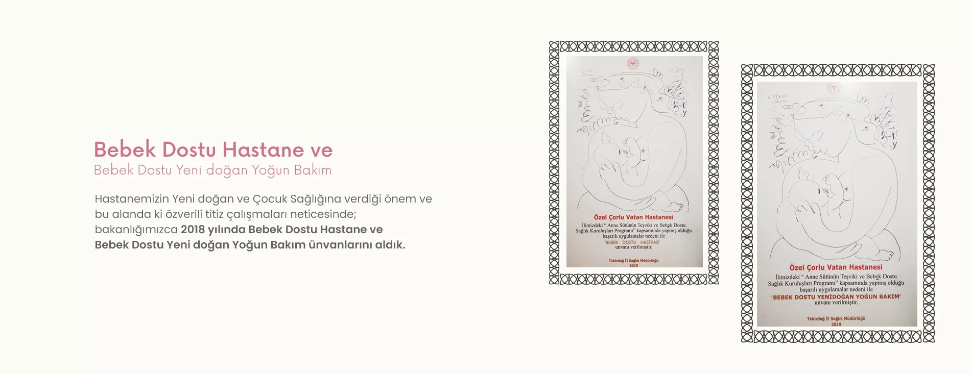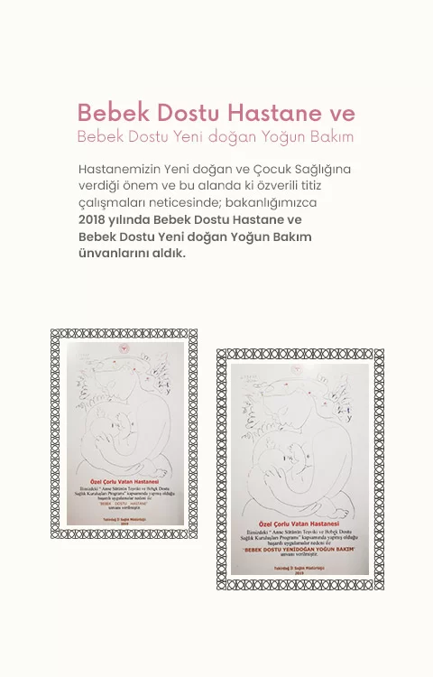 Çorlu Vatan Hastanesi; 41 yıldır, tüm branşlarda olduğu gibi Kadın ve Çocuk Sağlığı alanında da, bu zamanın ve geleceğin güvencesi olmaya devam etmektedir.